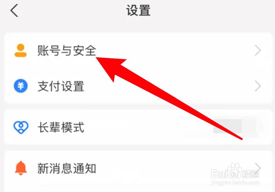进入应用设置页,点击账号与安全。