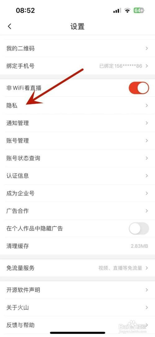 从抖音火山版中打开隐私选项。