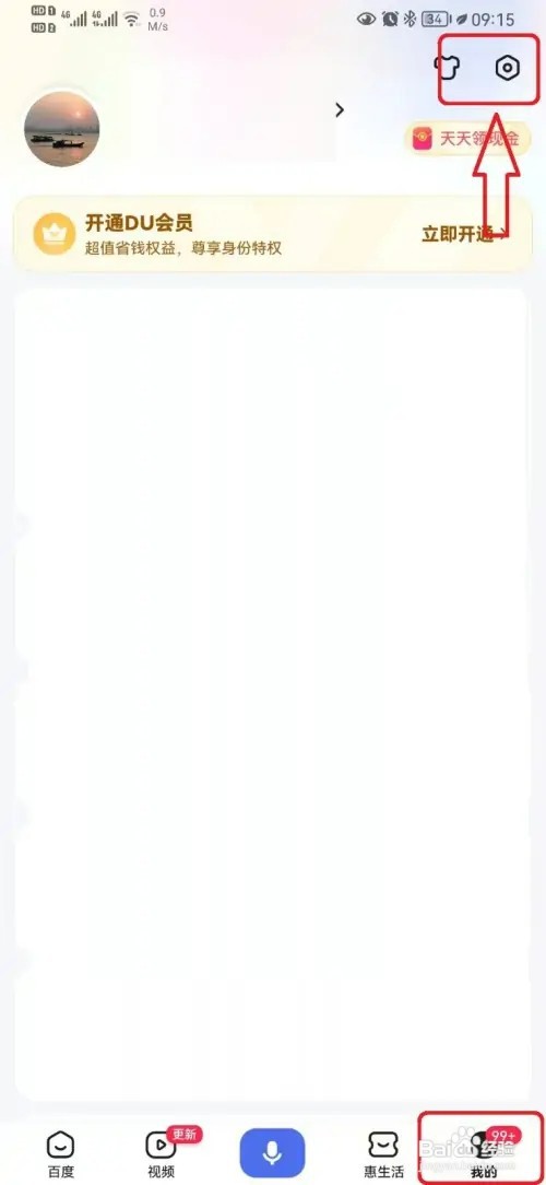 1/3分步阅读在百度/我的页面,选择右上角【设置】选项。