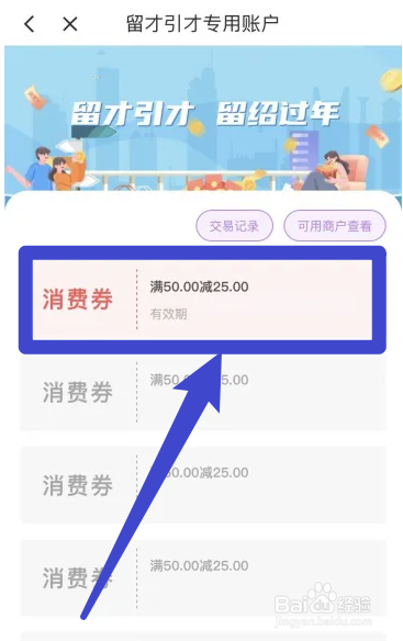 1/3分步阅读进入人才消费券,找到消费券点击去使用