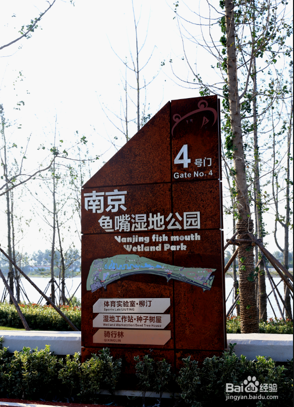 4号门:鱼背公园,再往前就是南京眼了 原始生态 核心的湿地公园内部是湿地栈道,约2公里多,穿梭在栈道上,这里的柳树、杨树等都已经习惯这种自然环境了; 秋冬季节,整个湿地野鸟成群。