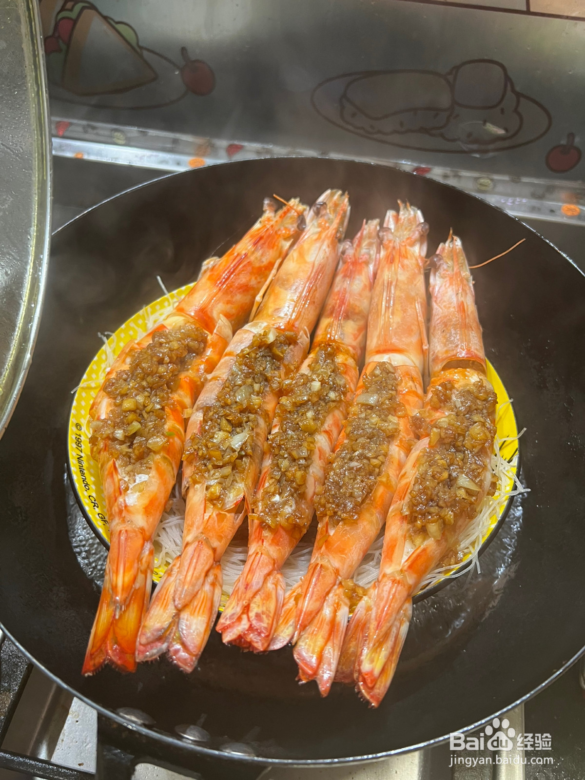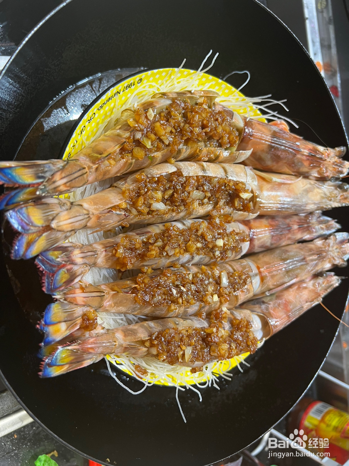 [图]9/13盘底铺上一层泡好的粉丝把炒好的蒜泥装入每个虾子的肚子里