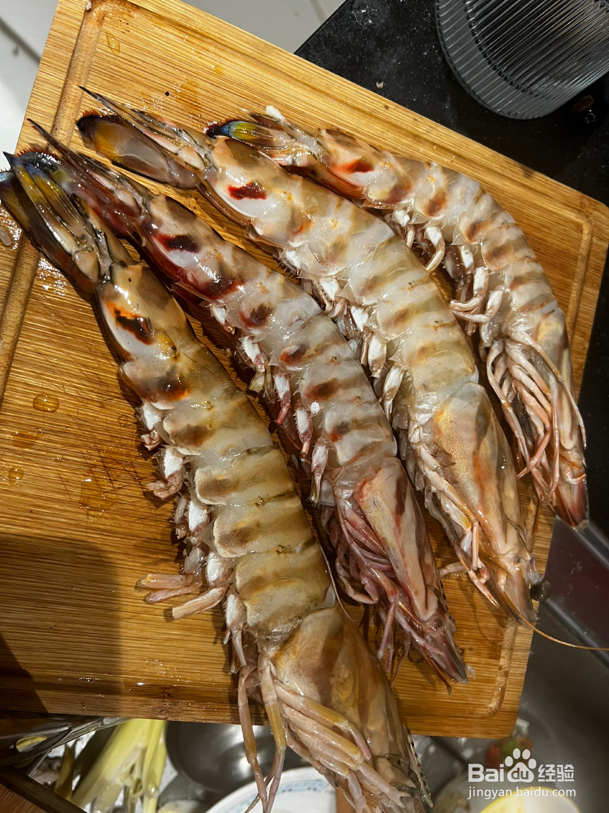 [图]2/13虾子解冻,根据你买的虾子大小比例做菜,我这个是比较大,所以我用了大概5只虾子