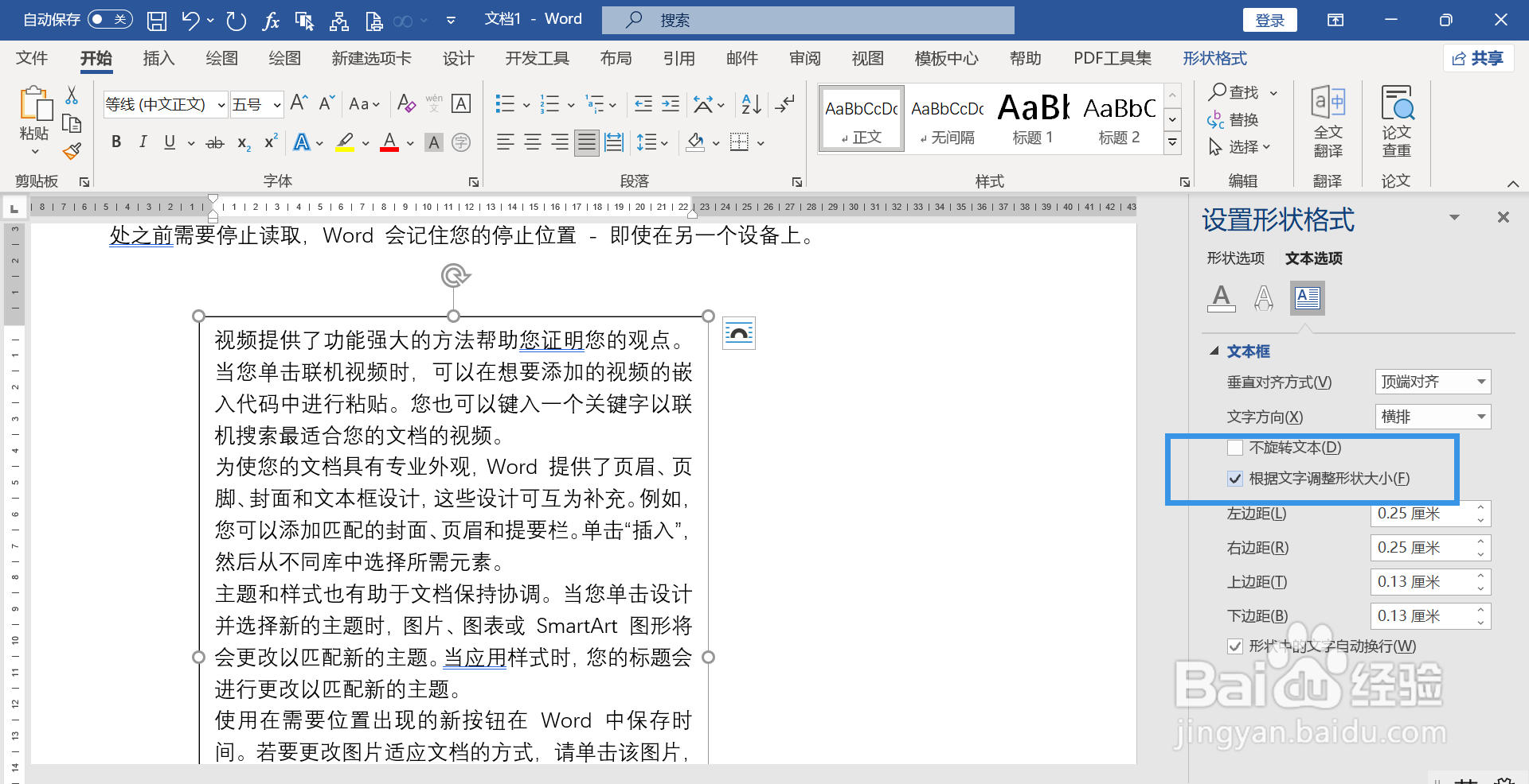 [图]3/3右侧弹出窗口,点击“文本选项-布局属性”,勾选“根据文字调整形状大小”,文本框随文字的多少改变形状的大小。