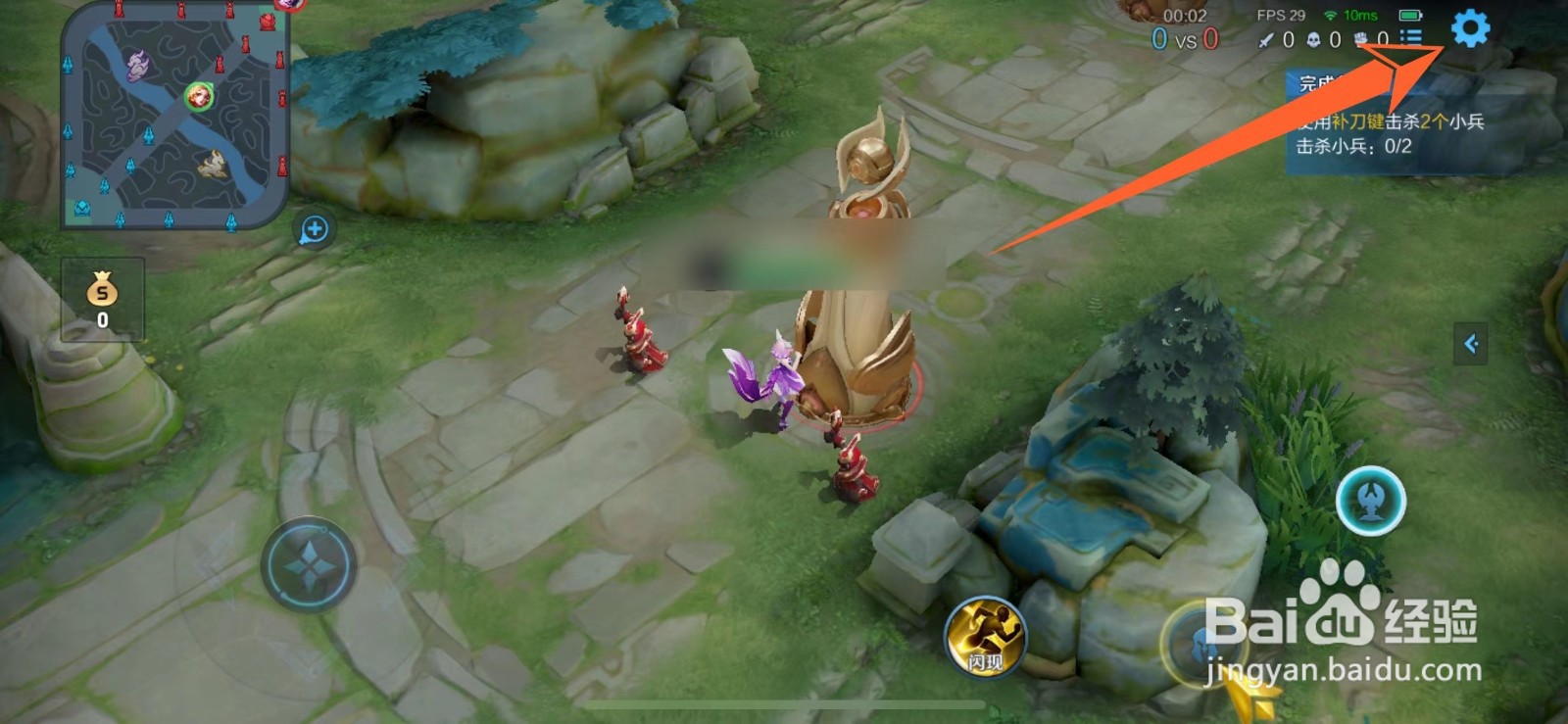 1/4分步阅读在王者荣耀新手训练关卡中,点击右上方小齿轮图标。