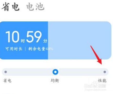 [图]2/3之后,选择省电里边的性能选项按钮。