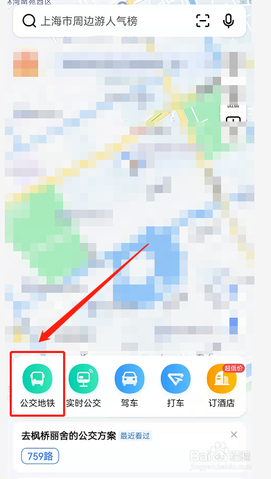 1/4分步阅读点击高德地图首页的“公交地铁”。