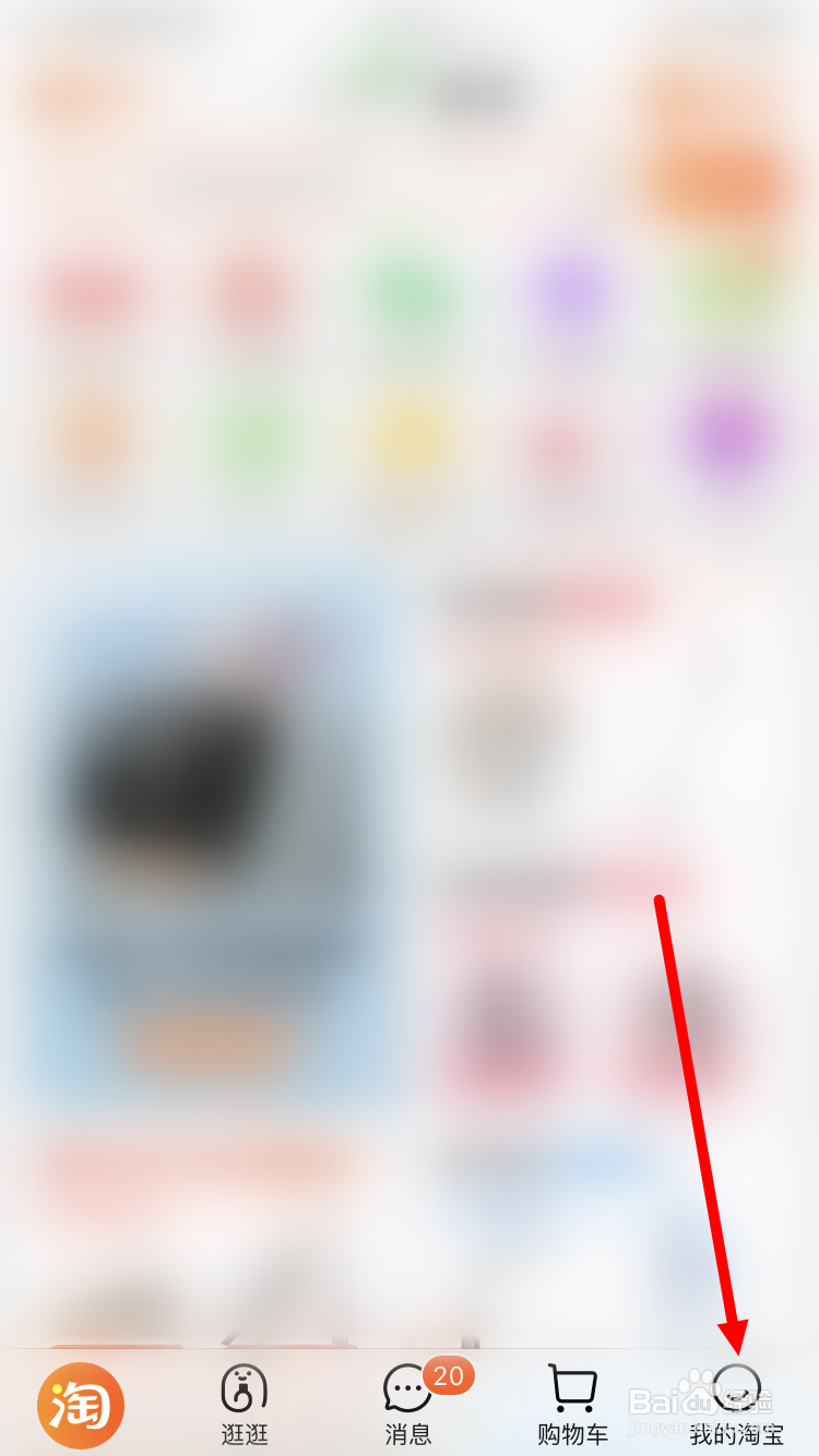 1/6分步阅读首先在手机上打开并登录淘宝,并点击【我的淘宝】。