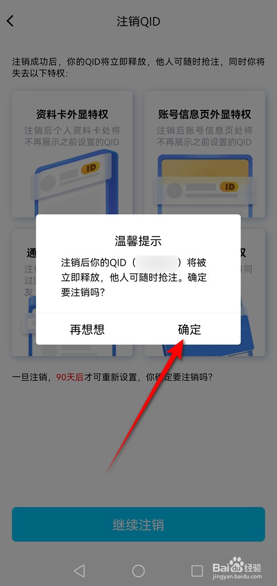 [图]9/9点击“确定”即可成功注销QID,注销后,即可关闭QQID。