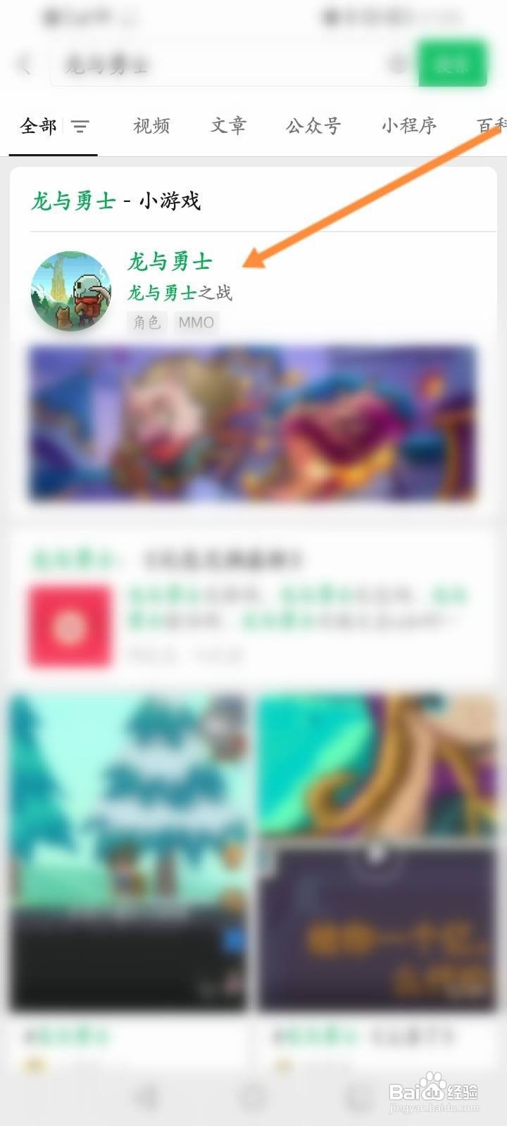 1/4分步阅读打开手机的微信,输入并点击龙与勇士。