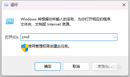 1/5再次按下Win+R键,输入cmd,然后按回车,打开命令提示符窗口。