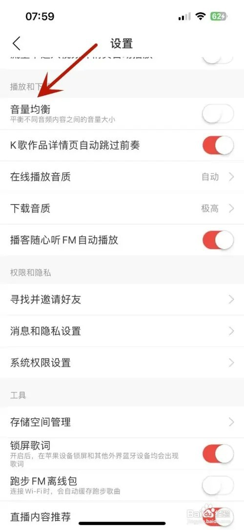 将“音乐均衡”后按钮打开,即可实现网易云音乐打开“音乐均衡”功能了。