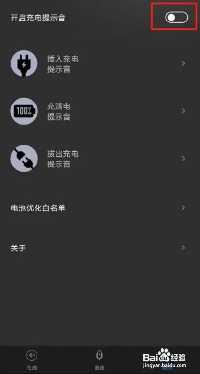 1/4分步阅读打开手机中的充电提示音。如图所示