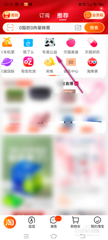 1/4分步阅读打开淘宝,点击冬奥公益。