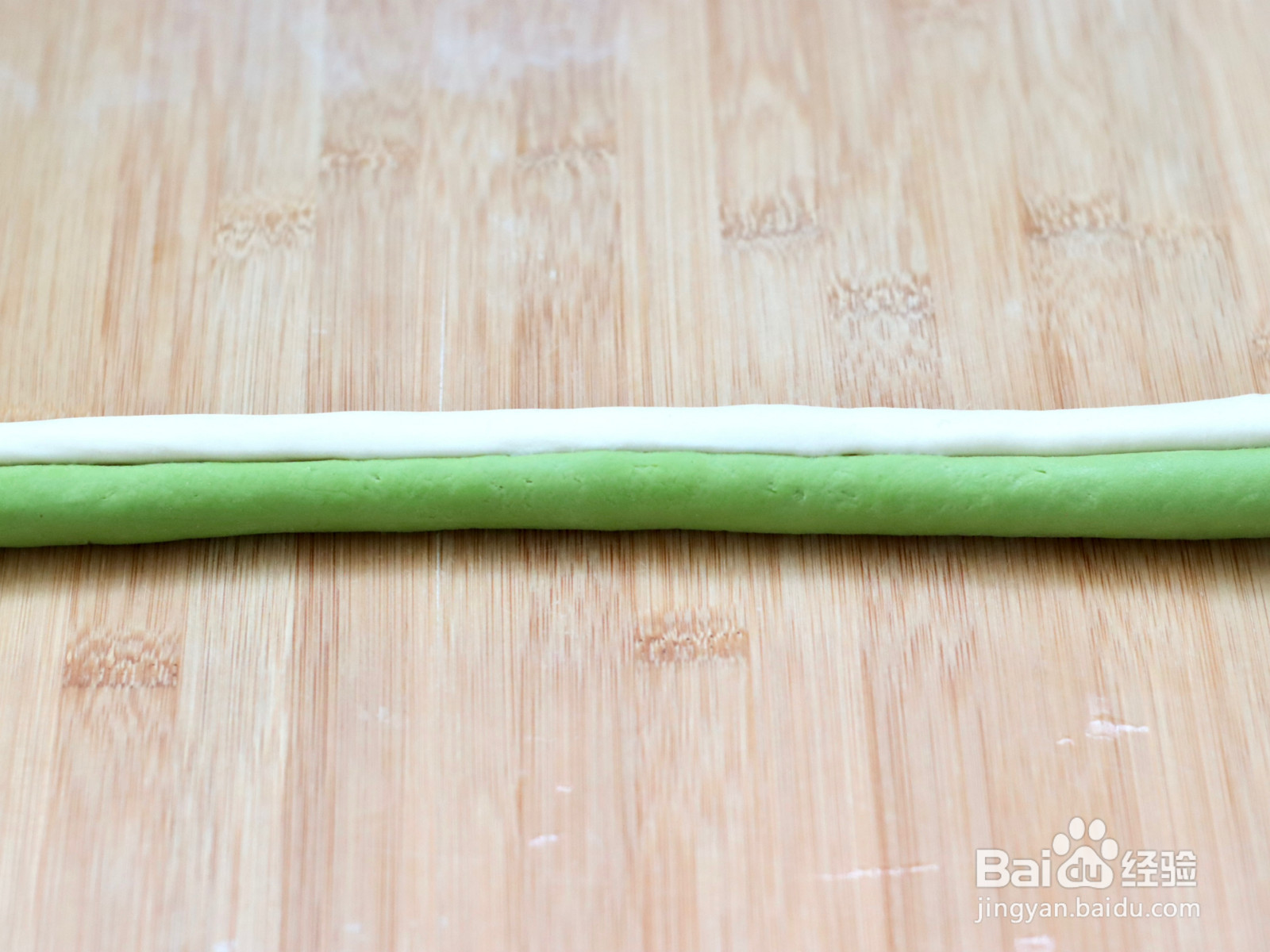 [图]6/16和成绿色的面团,剩下的125克面粉放入70克清水和成白色的面团,静置松弛半小时。