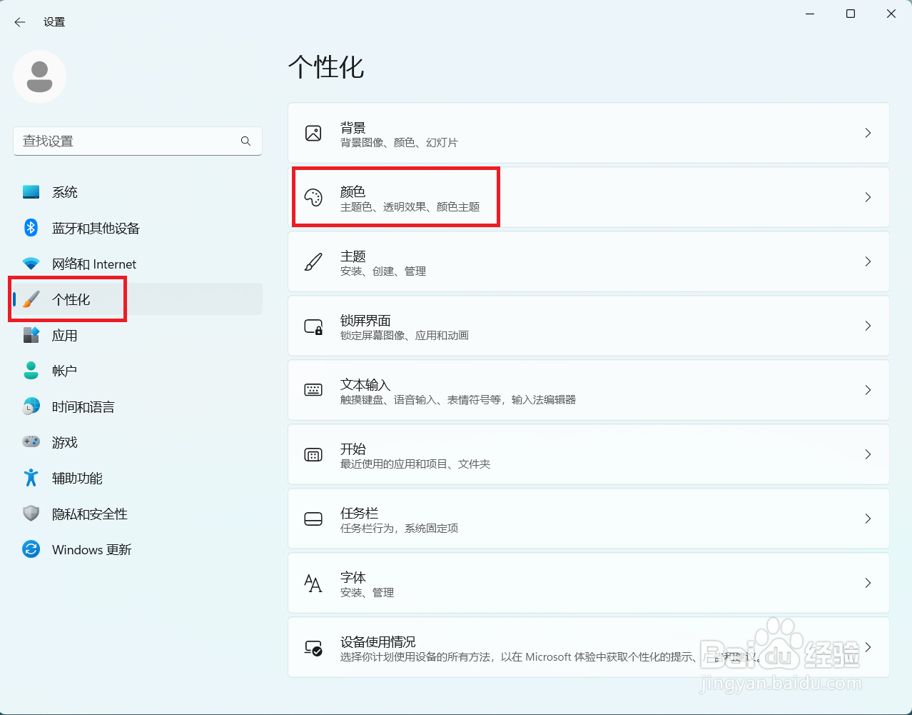 [图]2/3在设置页面,依次选择【个性化】/【颜色】选项。