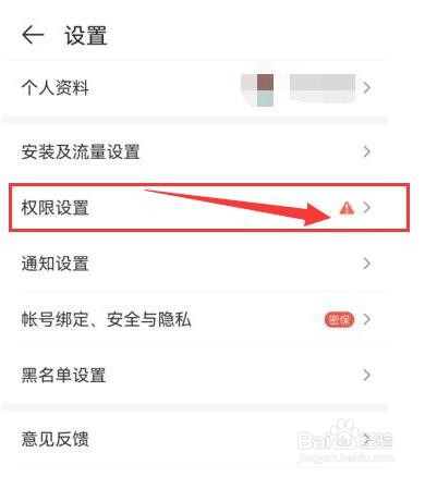 [图]2/3进入“设置”界面后,点击进入“权限设置”,如图所示。