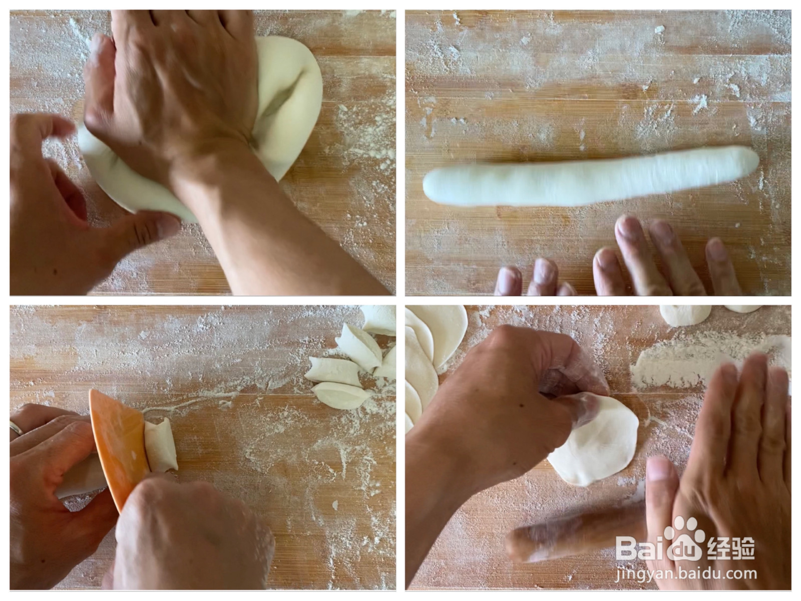 [图]11/14醒发好的面团 再次揉光滑。 揉好的面团搓成长条 切成面剂 面剂按扁 擀成饺子皮。