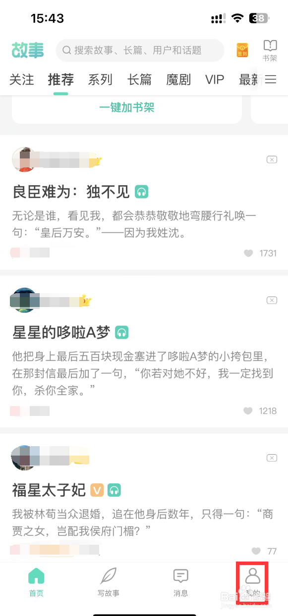 1/4分步阅读手机打开每天读点故事APP后,点击右下角“我的”。