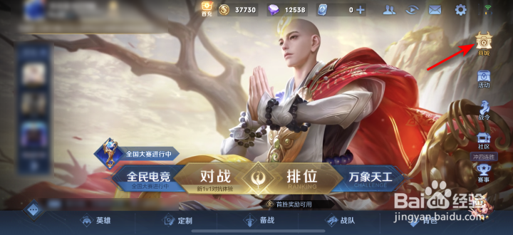1/4分步阅读打开手机上的王者荣耀,然后点击商城。