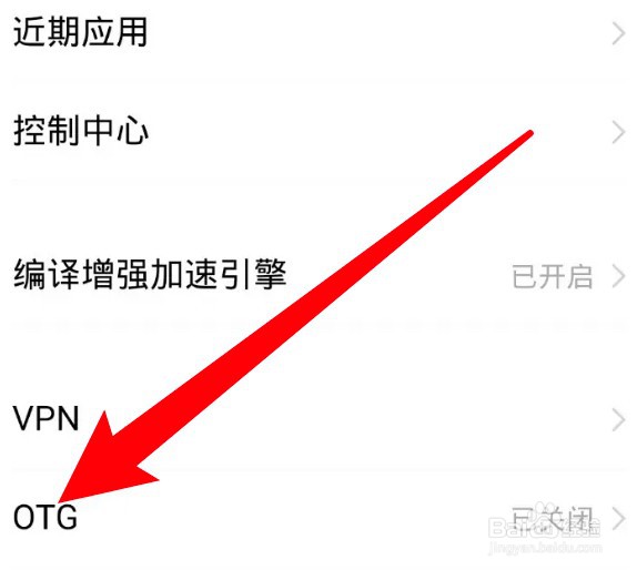 进入新的页面,点击打开OTG右边的开关即可。