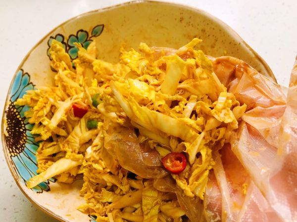 1/5分步阅读娃娃菜切丝,线椒泰椒切丁,大蒜拍开切丁或蒜泥