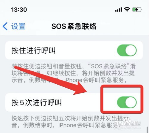 连按5次侧边按钮,即可自动呼叫紧急联系人。
