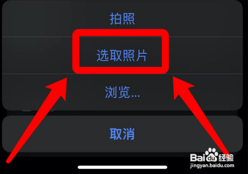 插入照片点击“选取”,即可设置为隔空投送头像。