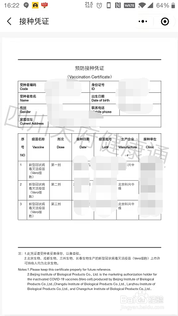 [图]4/5进入接种信息页面,会展示你当前接种信息,接种疫苗、日期、批号、机构、剂次信息