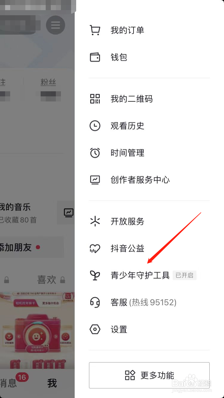 进入青少年模式,点击开启选项完成密码等设置即可。