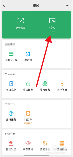 [图]3/7进入微信服务界面,点击右上角【钱包】