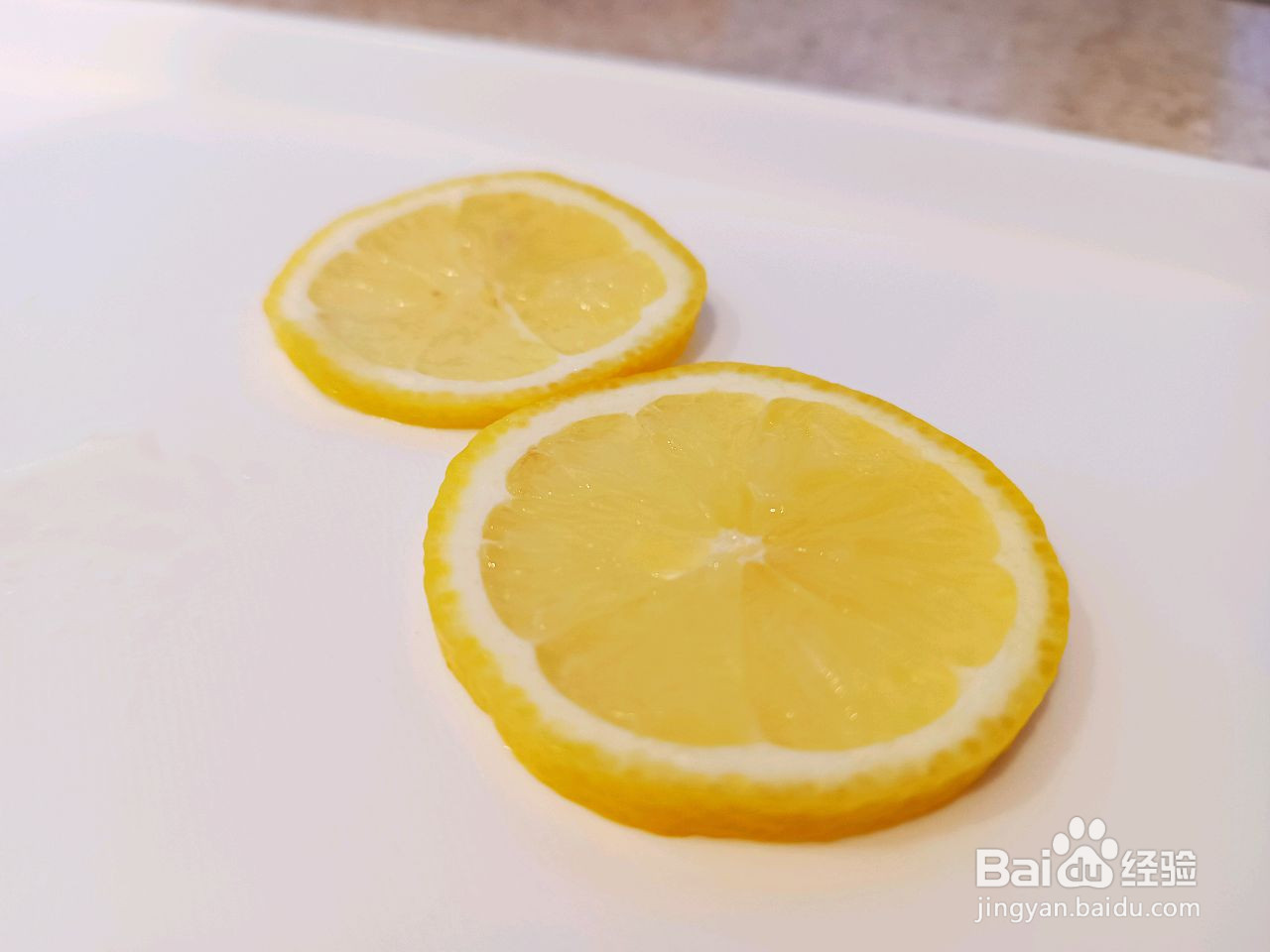 [图]2/11柠檬对半切开。取一半柠檬切片,这里切了两片。