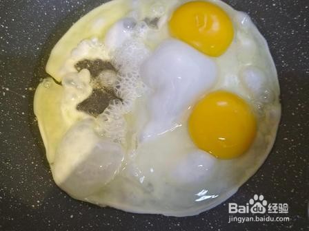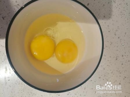 准备蛋液:两颗鸡蛋打入碗中,加一点点盐,用筷子搅散。