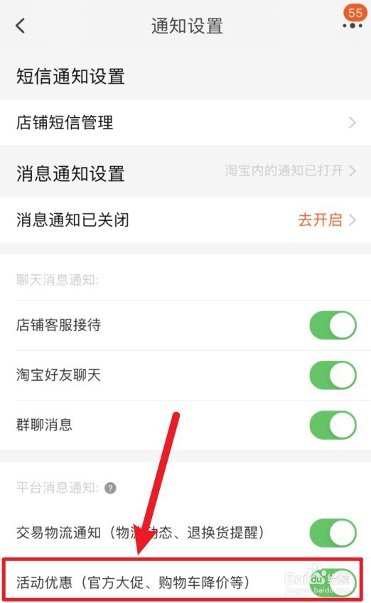 [图]3/3在消息通知界面里,将活动优惠消息开启,这样就可以第一时间收到降价的消息,然后去抢购就可以了。