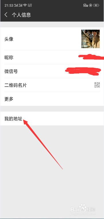 [图]4/6在进入个人信息主界面后,点击我的地址,如下图,进入我的地址主界面,如下图