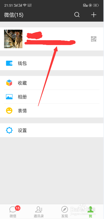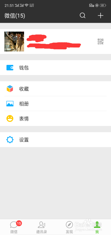 [图]2/6在进入微信主界面后,点击我,如下图,进入个人中心,如下图