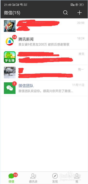 1/6分步阅读打开手机,找到微信,并打开,如下图,进入微信主界面,如下图