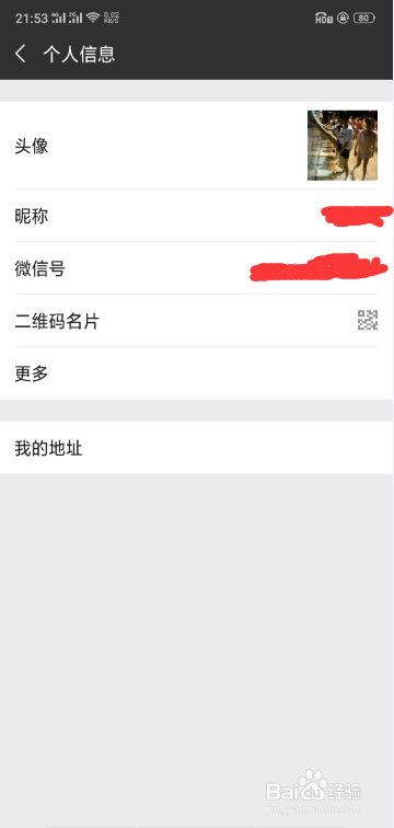 [图]3/6在进入个人中心后,点击头像那一栏,如下图,进入个人信息主界面,如下图