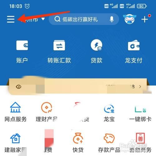 1/4分步阅读第一、在中国建设银行左上角点击“三”;
