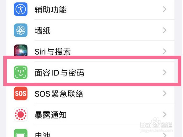 1/3分步阅读找出设置中的面部ID和密码选项。