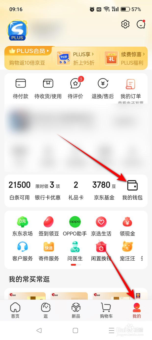 1/6分步阅读打开京东我的页面,点击“我的钱包”图标进入。