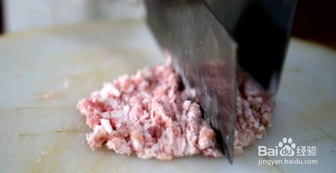 1/5分步阅读将五花肉切成片,再切成细丝,然后剁成馅儿。
