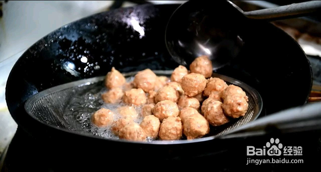 [图]3/5锅内倒油,烧至六成热时开始挤丸子,下油锅炸至金黄色捞出。