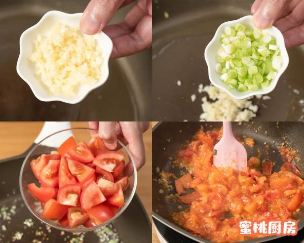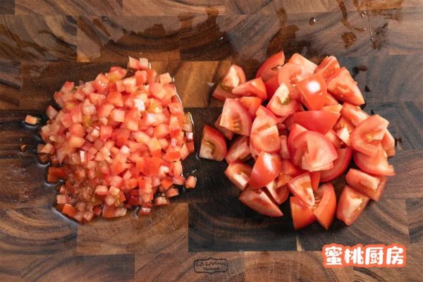 1/8分步阅读西红柿300g切成大块,200g切成小粒;虾仁切粒备用