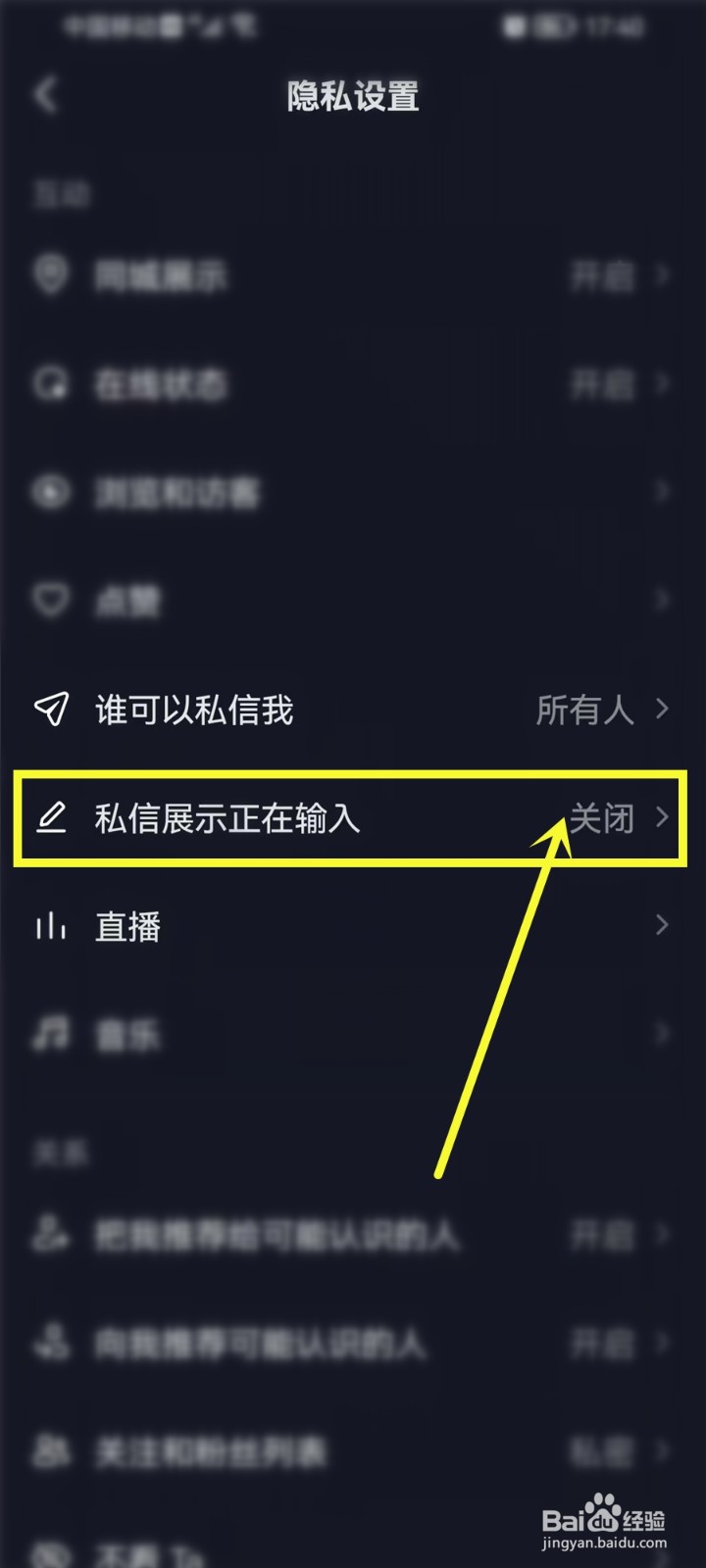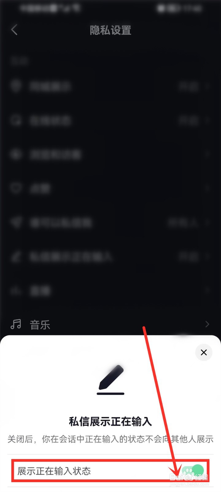 [图]4/5进入隐私设置,下拉找到“私信展示正在输入”设置项,点击进入。