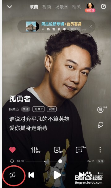 [图]3/3正在播放的音乐就被设置为单曲循环状态了(单曲循环图标中间会有一个1的小符号)。