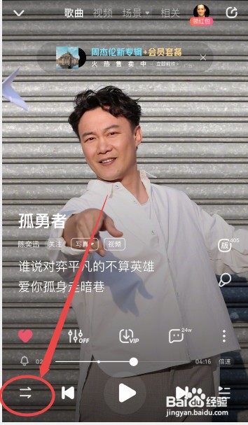 1/3分步阅读酷狗音乐进入音乐播放页面,点击左下角两横带有勾的符号(这是顺序播放的图标)。