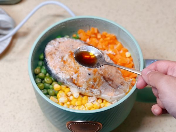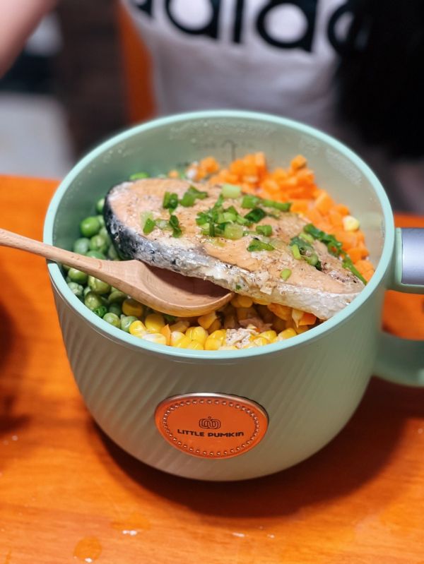 [图]9/16再加入腌制好的三文鱼,盖上锅盖焖熟;