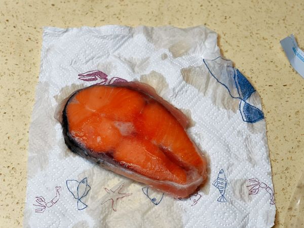 1/16分步阅读解冻三文鱼排,解冻后用厨房纸吸干水份;