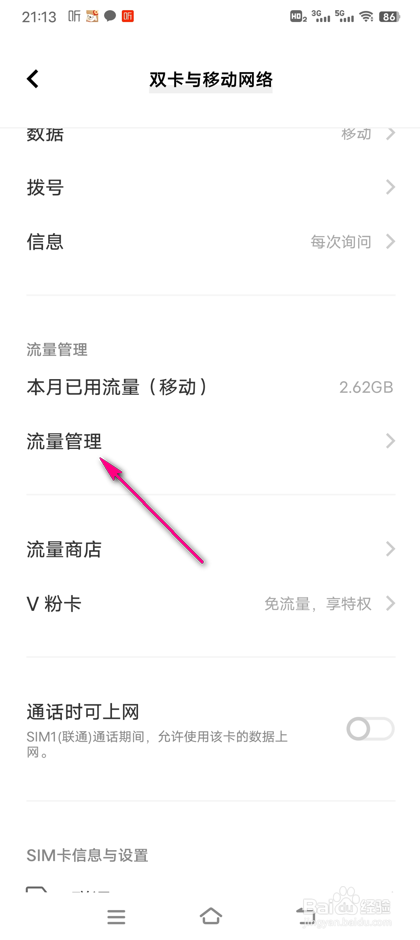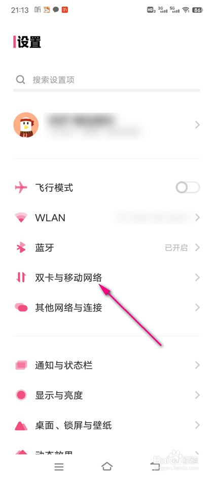 1/5分步阅读在设置界面,点击第四个双卡与移动网络。